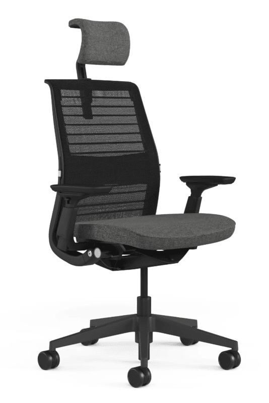 Think Task chair With Head Rest - Knit back & upholstered seat Seat Finish: (Otto) Back Finish: (3D Knit) Adjustable Lumbar Colour scheme: Monochromatic Frame Finish: Black 6205 (Plastic - PG1) Outer Back Finish: Black 6205 (Plastic) Plastic Base Base Finish: Black 6205 (Plastic - PG1) Height,Width,Pivot,Depth Arm Arms Finish: Black 6205 (Plastic - PG1) Soft Casters Standard Headrest Headrest Frame Finish: Black 6205 (Plastic) Headrest Finish: 5F17 Black (Buzz2) No Coat Hanger The Steelcase Think Chair with Headrest is designed to provide outstanding comfort and support for professionals who spend long hours at their desks. With advanced ergonomic features, including adjustable seat depth, lumbar support, and a headrest, the Think Chair promotes healthy posture and enhances productivity. Its sleek, modern design integrates seamlessly into any office environment, making it a top choice for both home and corporate spaces.
