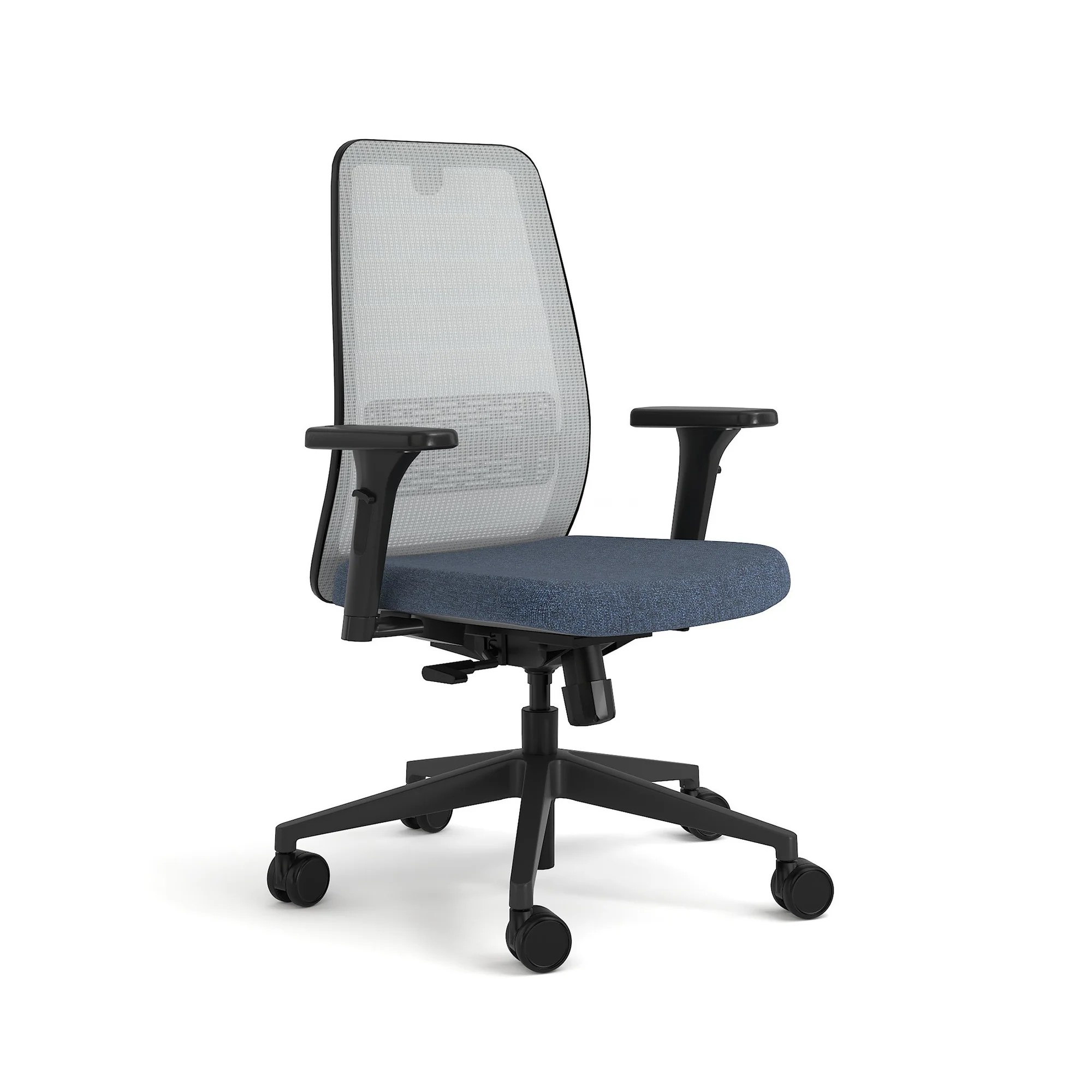 Steelcase : Personality (Micromesh Back and Upholstery Seat) Personality combines outstanding ergonomic support with intuitive adjustability to enable each user to adjust the position of comfort to suit their physique and the task in hand. The mesh backrest distributes weight to minimize pressure on the spine while reclining, as well as providing excellent air circulation for thermal comfort.